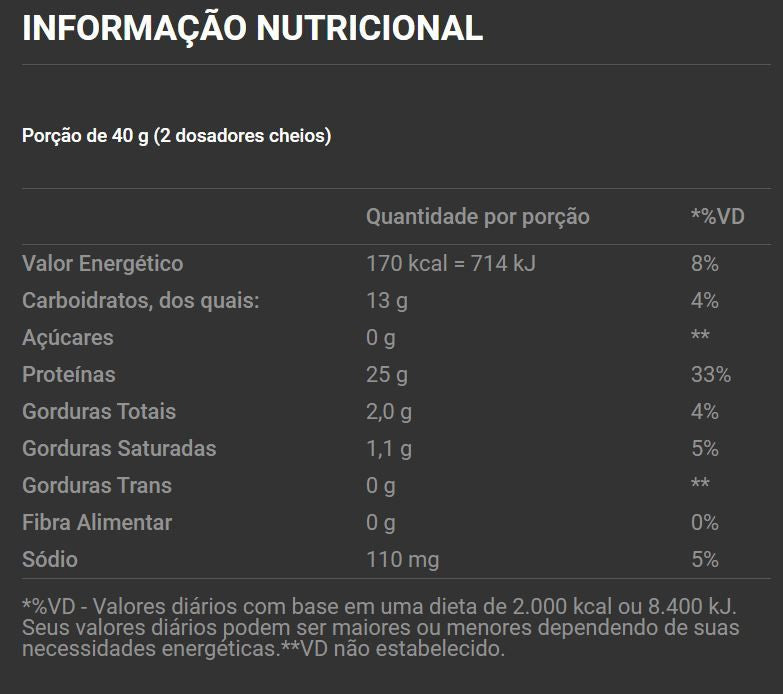 Produto formulado como blend de proteínas do soro do leite (WPC, WPI e WPH), combinando diferentes taxas de digestão para fornecer aminoácidos de forma rápida e sustentada. A fórmula foi desenvolvida para oferecer boa cremosidade e solubilidade em preparos líquidos, facilitando o uso em rotina de treino de força, hipertrofia e recuperação muscular.