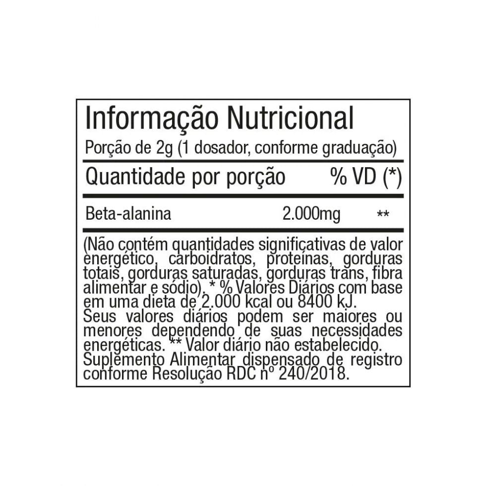 - Beta-alanina pura: ingrediente central para suporte à resistência em treinos de alta intensidade.