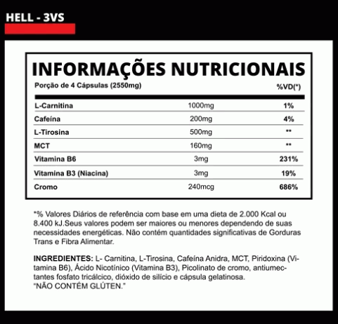 Hell Underground Series da 3VS é um suplemento termogênico em cápsulas desenvolvido para quem busca apoio ao emagrecimento e mais disposição no treino. Indicado para praticantes de atividade física que desejam maior energia antes do treino, o produto pode contribuir para o controle do apetite e para a manutenção do metabolismo. Recomendado como parte de rotina combinada com dieta e treino de força.