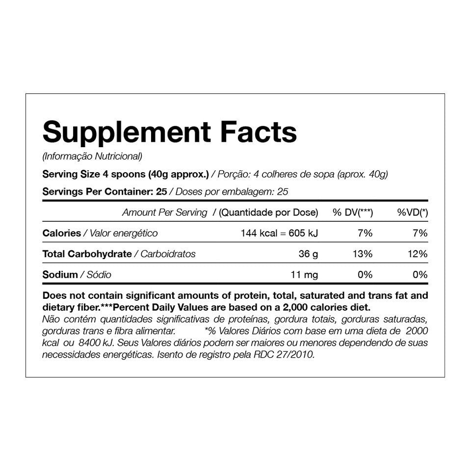 Consumir conforme necessidade energética e orientação profissional. Pode ser usado no período pré-treino para abastecer de energia ou intra-treino para manutenção do rendimento. Dissolver em água ou bebida de sua preferência e ajustar a quantidade de acordo com o objetivo e prescrição de nutricionista ou médico.