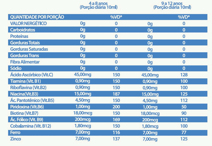 - Gestantes, lactantes e crianças fora da faixa etária de 4 a 12 anos devem consumir somente sob orientação de profissional de saúde.