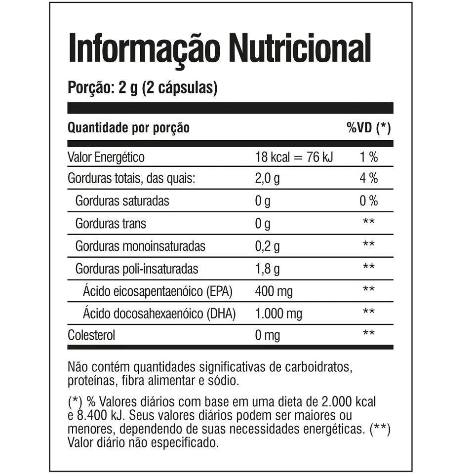 - Porção: 2 cápsulas (1.400 mg de ômega-3)