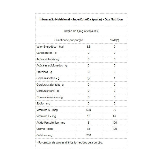 SuperCut Original da Dux Human Health é um suplemento termogênico em cápsulas desenvolvido para quem busca mais energia no treino e apoio à queima de gordura. Indicado para uso em rotinas de treino e preparação física, pode contribuir para maior disposição e controle do apetite quando aliado a dieta e exercício.